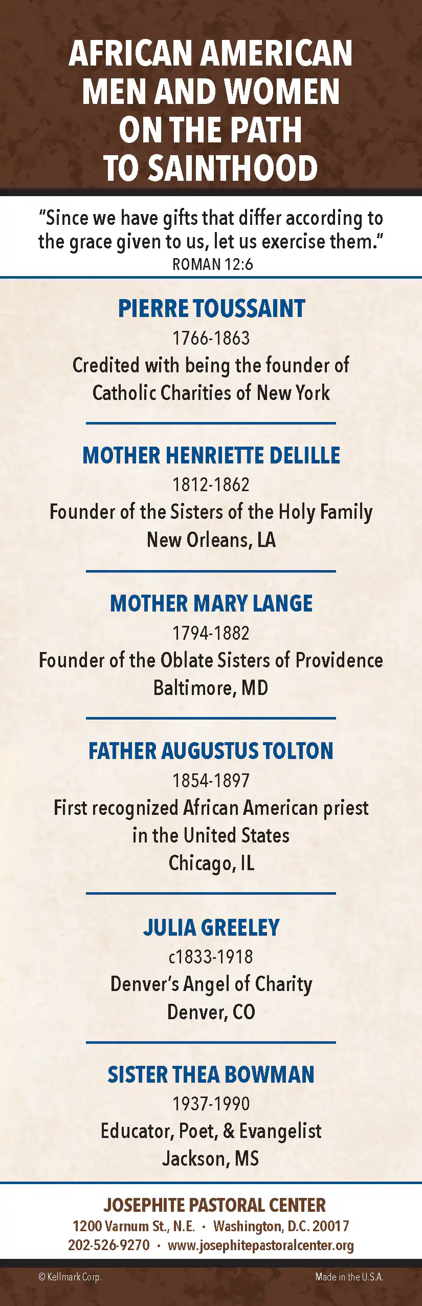 Mark the pages of your book with these attractive bookmarks of the African American Men and Women on the “Path to Sainthood.” Bookmarks make a great gift, too!