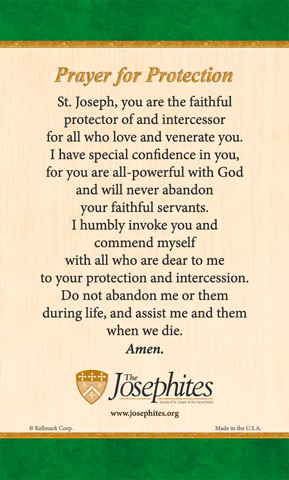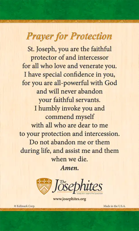 The St. Joseph Prayer for Protection is conveniently sized, durable and affordable.